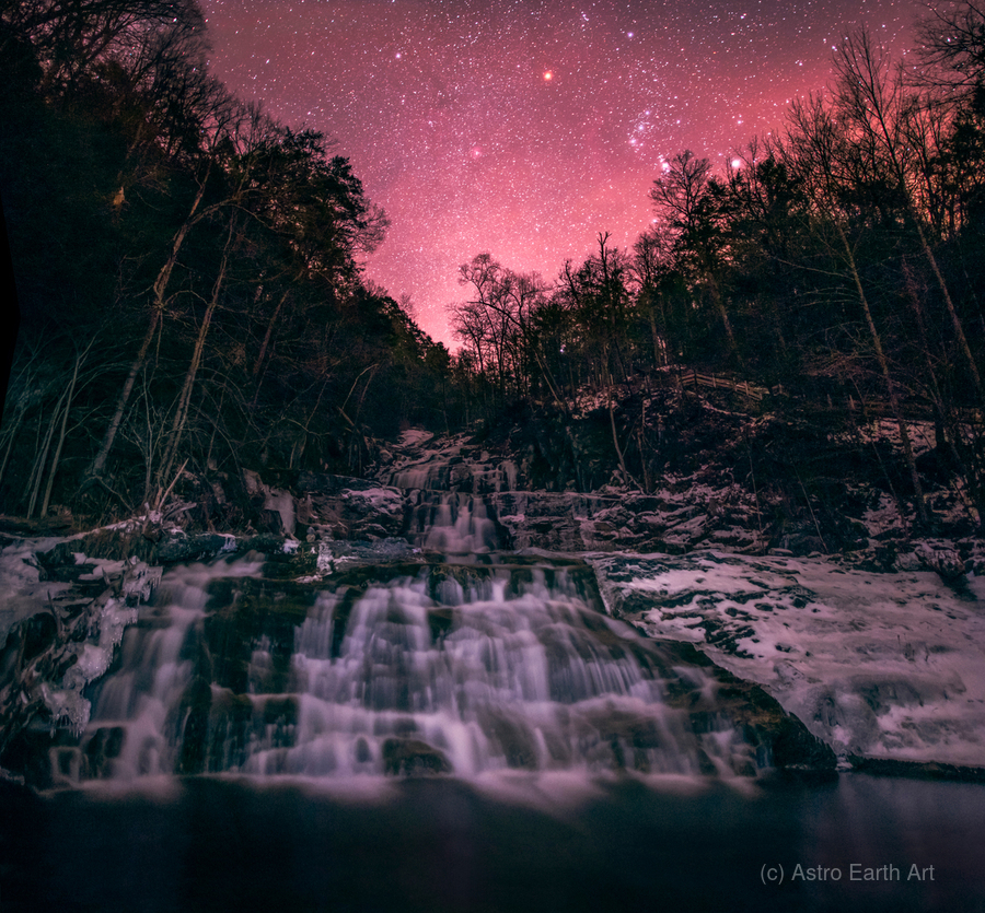 Orion with red Airglow over Kent Falls, Kent, CT, USA