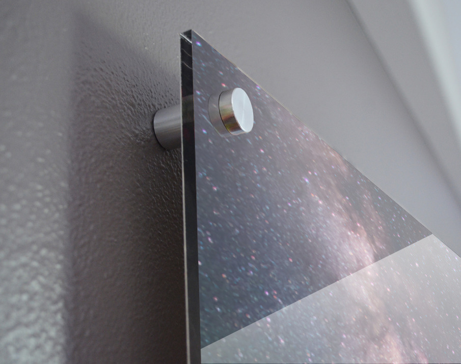 Printed to the edge - Ready to hang - provided with 4 premium polished aluminum stand off ( wall screws and mounting hardware provided )